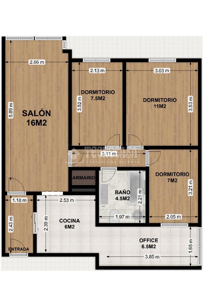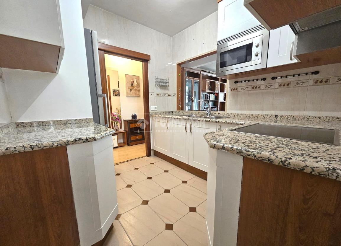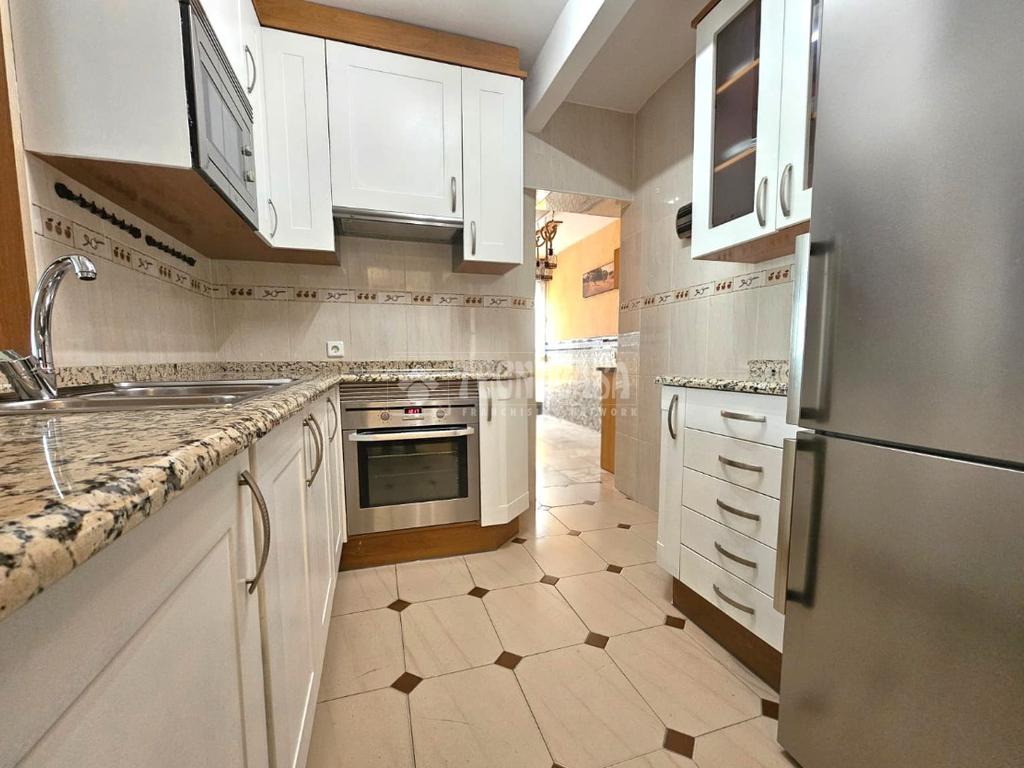 La vivienda se distribuye en salón de paso (al que se le unió la terraza), cocina totalmente equipada con office anexo, tres dormitorios y un cuarto de baño amplio con bañera.